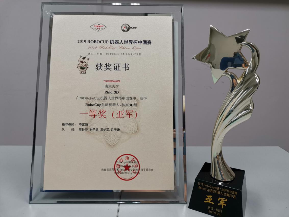2019年4月18日-21日,2019 RoboCup机器人世界杯中国赛在浙江绍兴柯桥中国轻纺城国际会展中心举行。经过三天的激烈角逐,我系机器人智能与神经计算研究组(/rinc/index.html)的“Rinc_3D”团队(成员:高钟烨,谢子尧,易梦军,许子谦指导教师:申富饶)荣获仿真3D组一等奖(亚军)。
