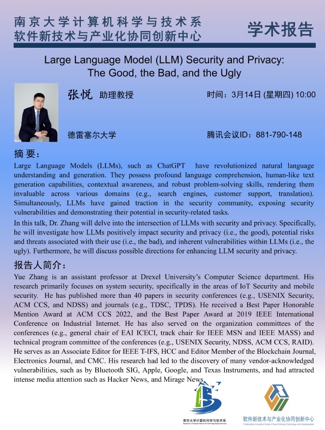 2024年3月14日 学术报告 - 张悦 助理教授