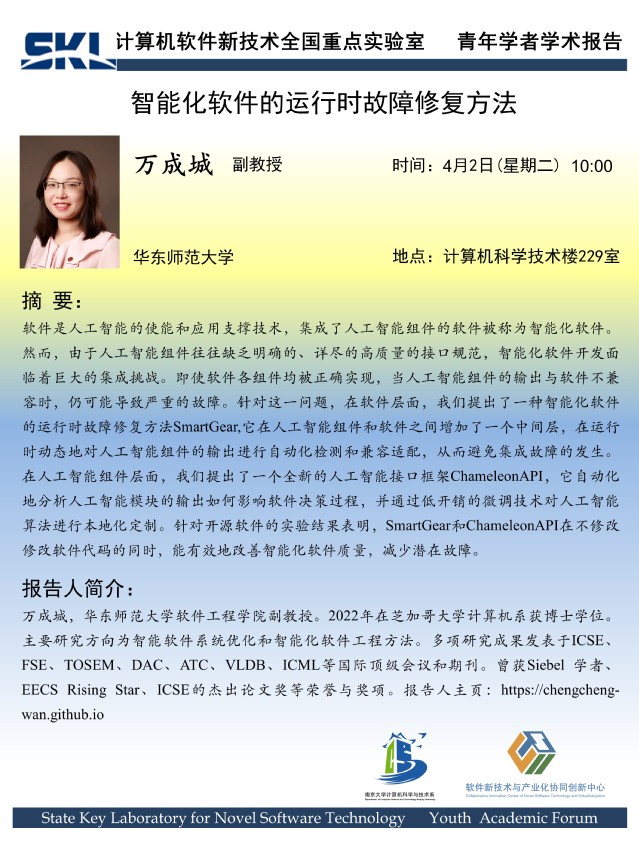 2024年4月2日 “软件新技术讲坛” 学术报告 - 万成城 副教授