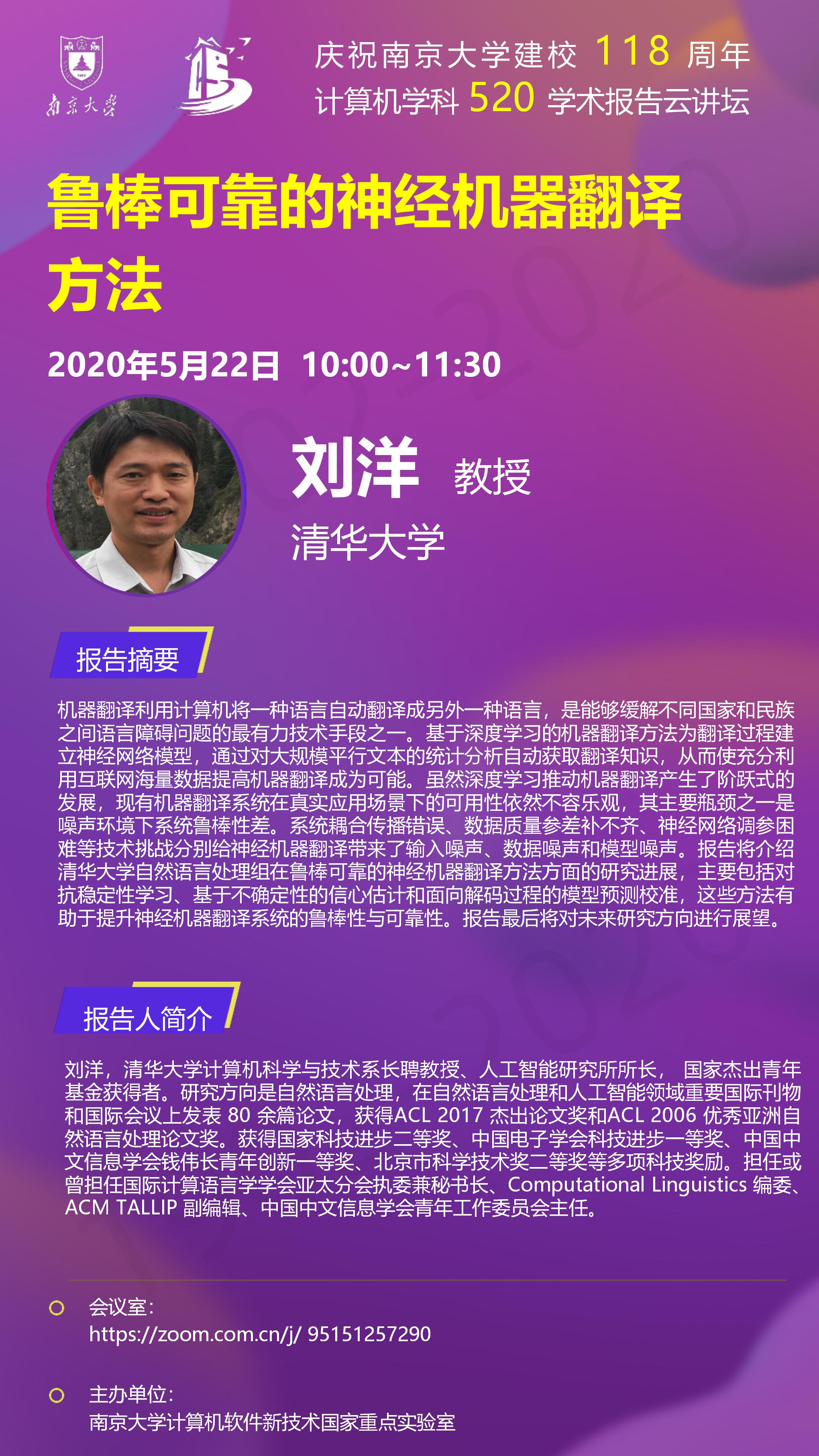 庆祝太阳成集团建校118周年 计算机学科520学术报告云讲坛- 刘洋 教授