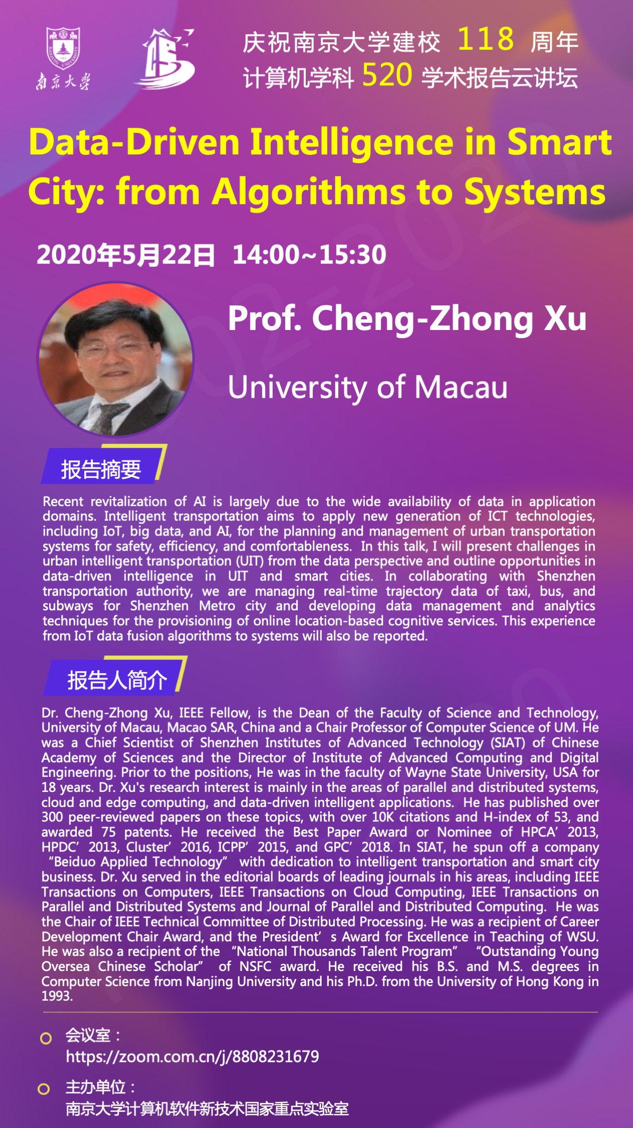 庆祝太阳成集团建校118周年 计算机学科520学术报告云讲坛- 须成忠 教授
