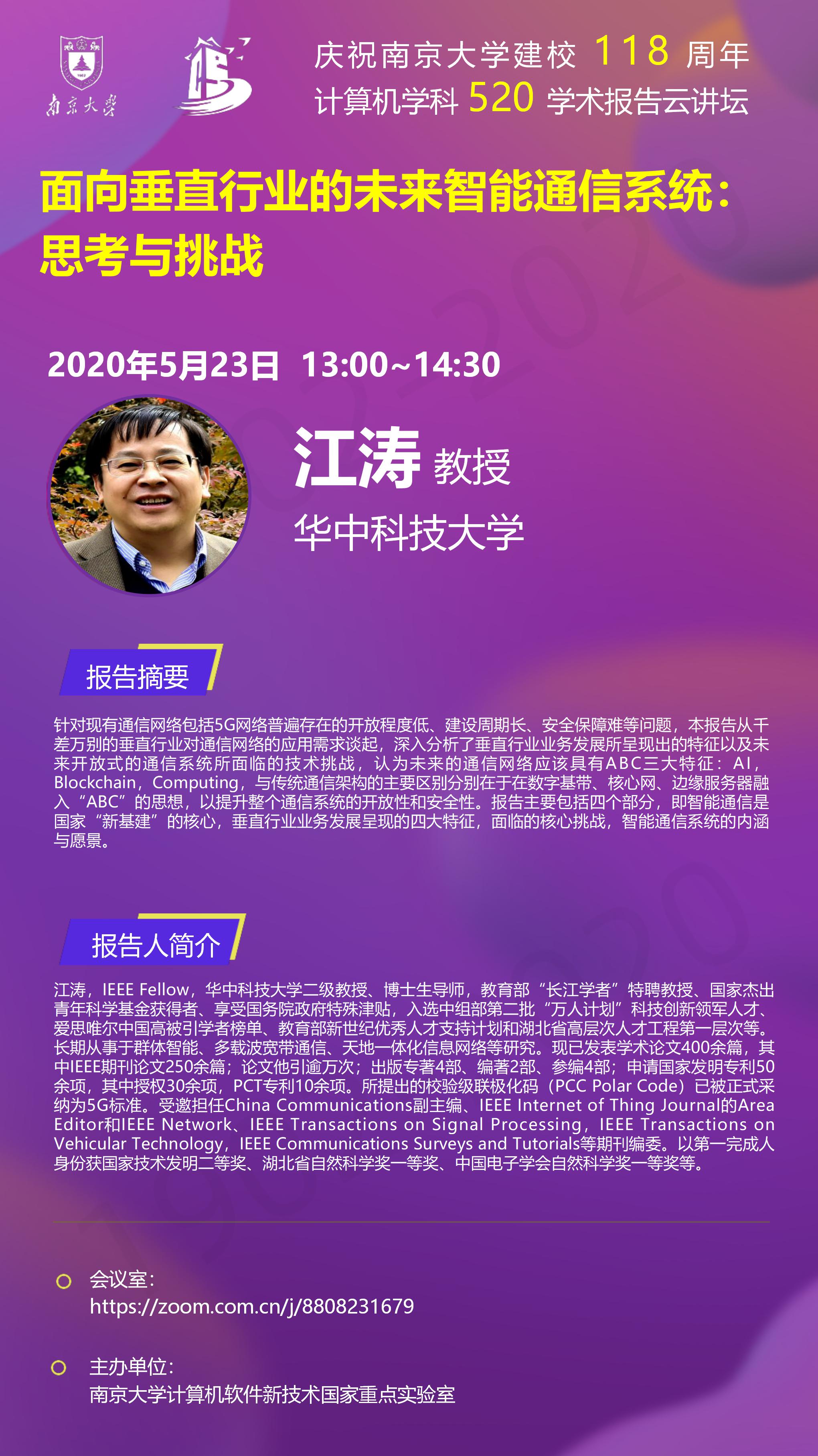 庆祝太阳成集团建校118周年 计算机学科520学术报告云讲坛- 江涛 教授