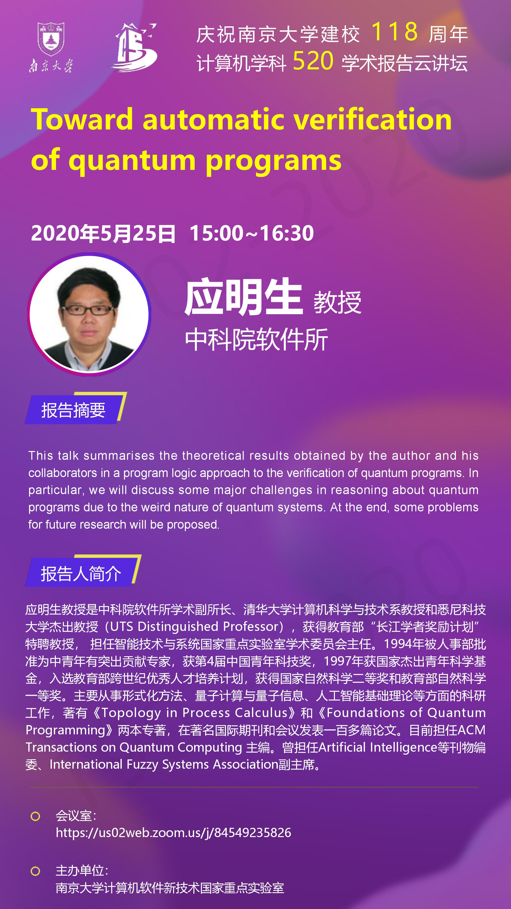 庆祝太阳成集团建校118周年 计算机学科520学术报告云讲坛- 应明生 教授