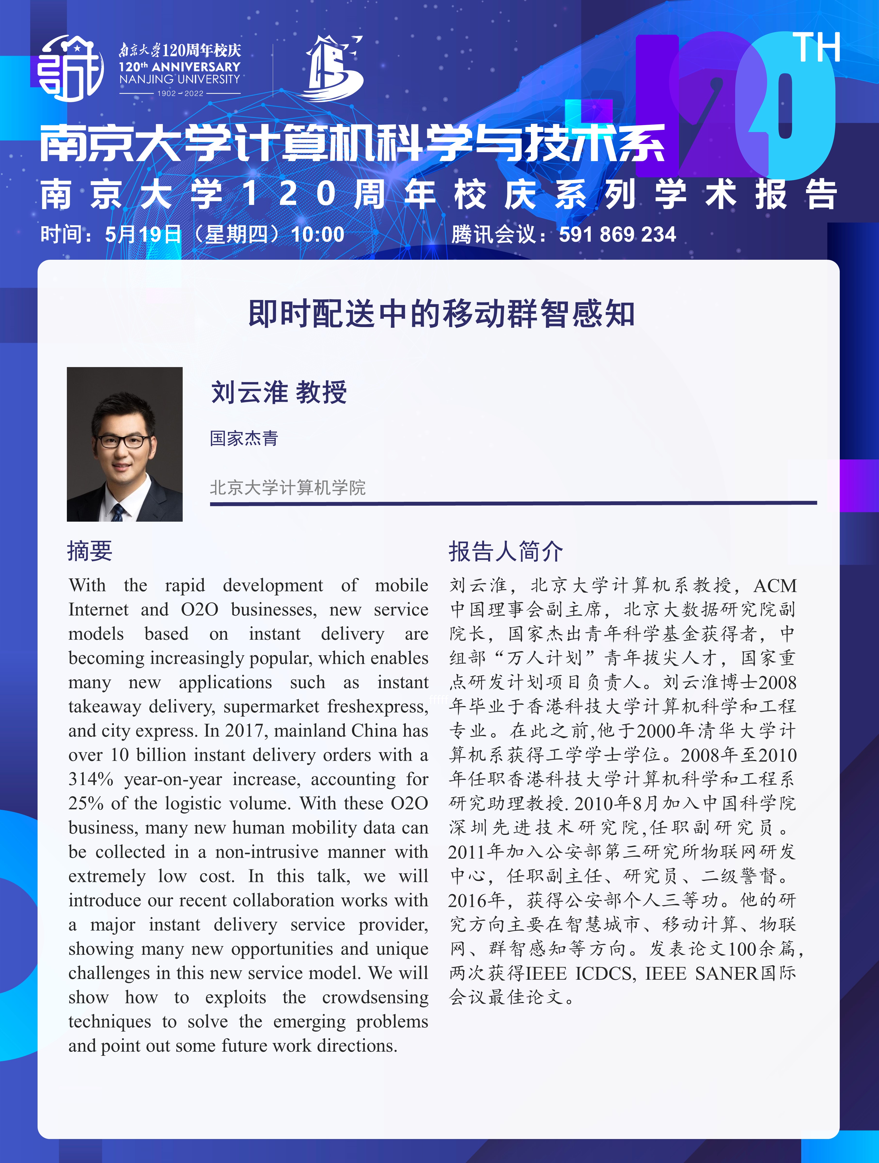 太阳成集团120周年校庆系列学术报告—即时配送中的移动群智感知