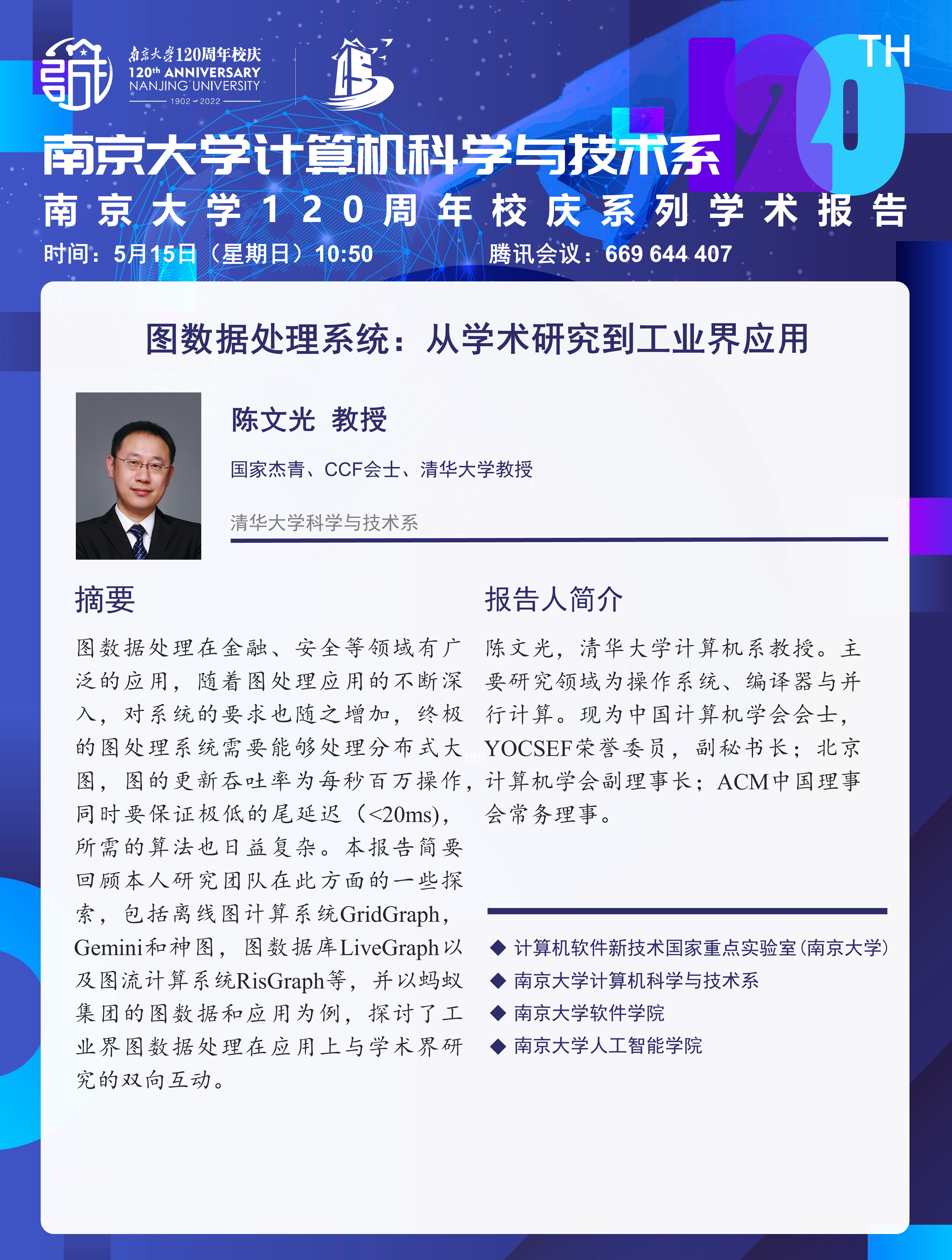 太阳成集团120周年校庆系列学术报告—图数据处理系统:从学术研究到工业界应用