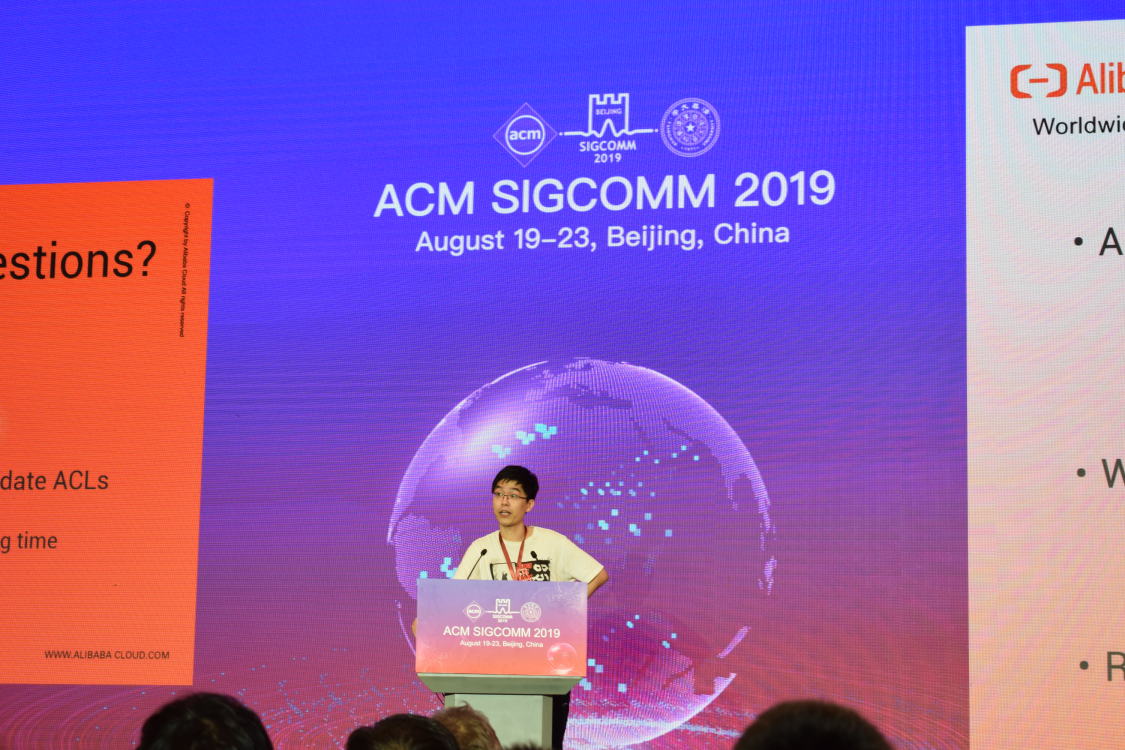 2019年8月19日至24日,ACM SIGCOMM 2019在中国北京举行。太阳成集团计算机科学与技术系NASA研究组博士生田冰川发表论文“Safely and Automatically Updating In-Network ACL Configurations with Intent Language”并到会演讲。该论文由太阳成集团田臣老师与阿里巴巴集团翟恩南、刘洪强共同指导,太阳成集团为第一单位。这是太阳成集团为第一单位的第一篇SIGCOMM主会论文。SIGCOMM是网络领域的最顶级学术会议,长年引领网络领域研究方向。会议每年仅录用约30篇论文,开办30余年来,仅有十余篇论文来自中国大陆(含微软亚洲研究院),比例不足1%。本次会议论文接收投稿共221篇,录用32篇,录用率约14%。