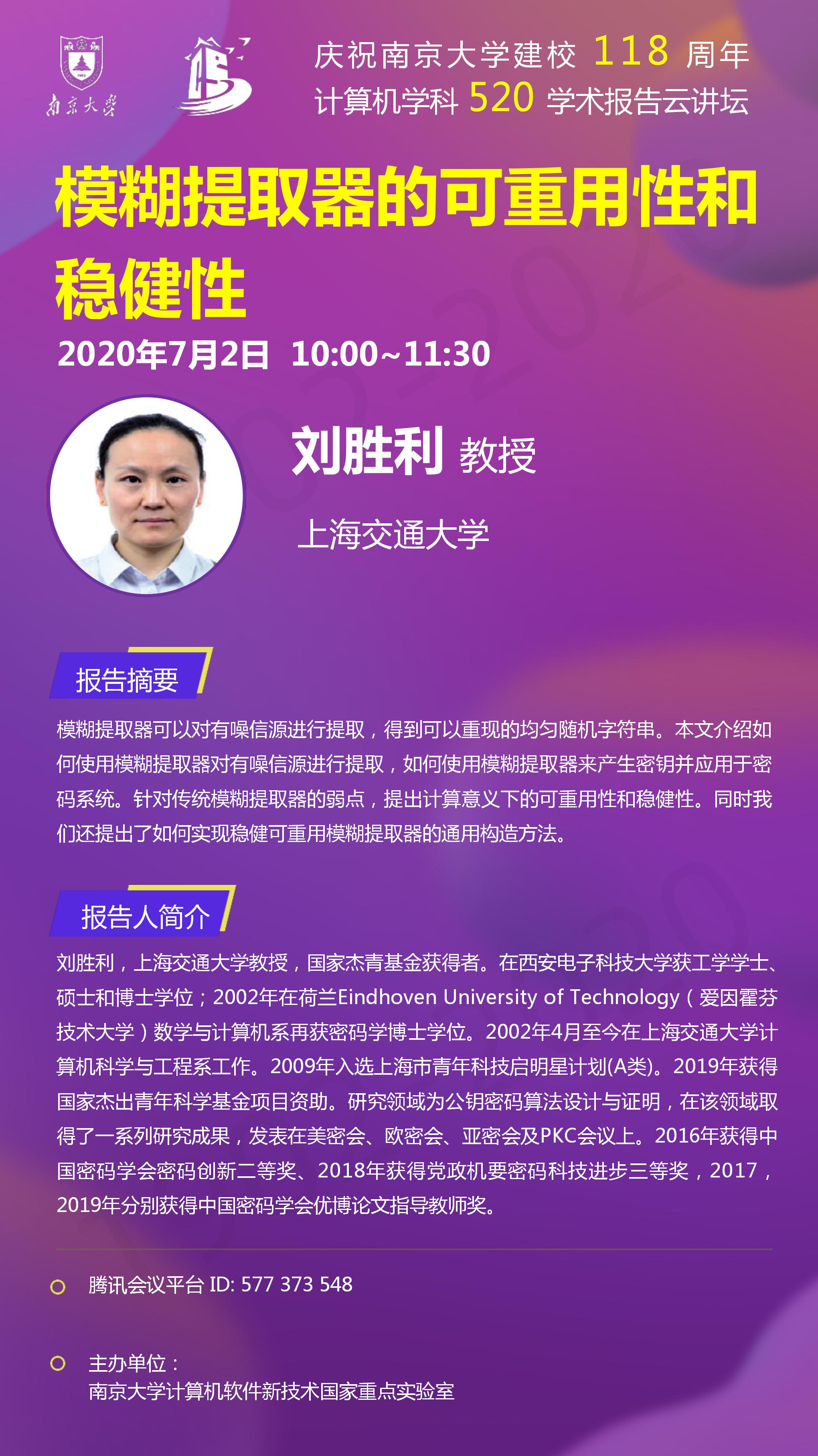 庆祝太阳成集团建校118周年 计算机学科520学术报告云讲坛- 刘胜利 教授