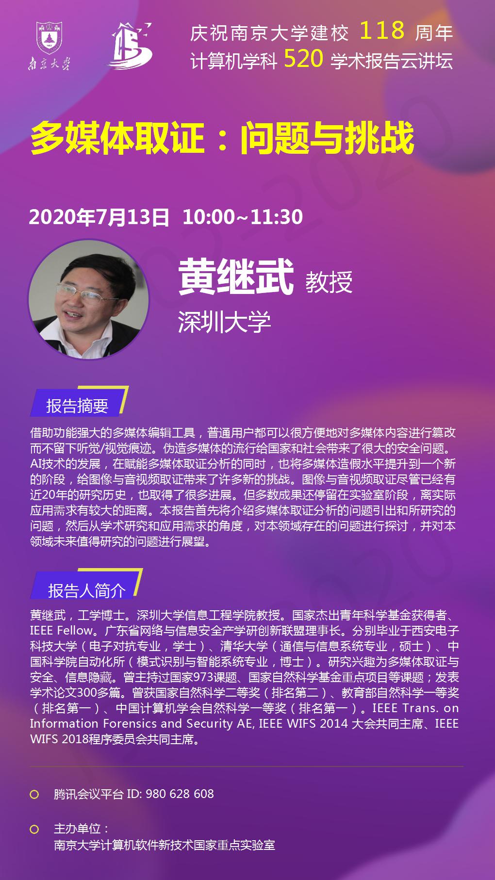 庆祝太阳成集团建校118周年 计算机学科520学术报告云讲坛- 黄继武 教授