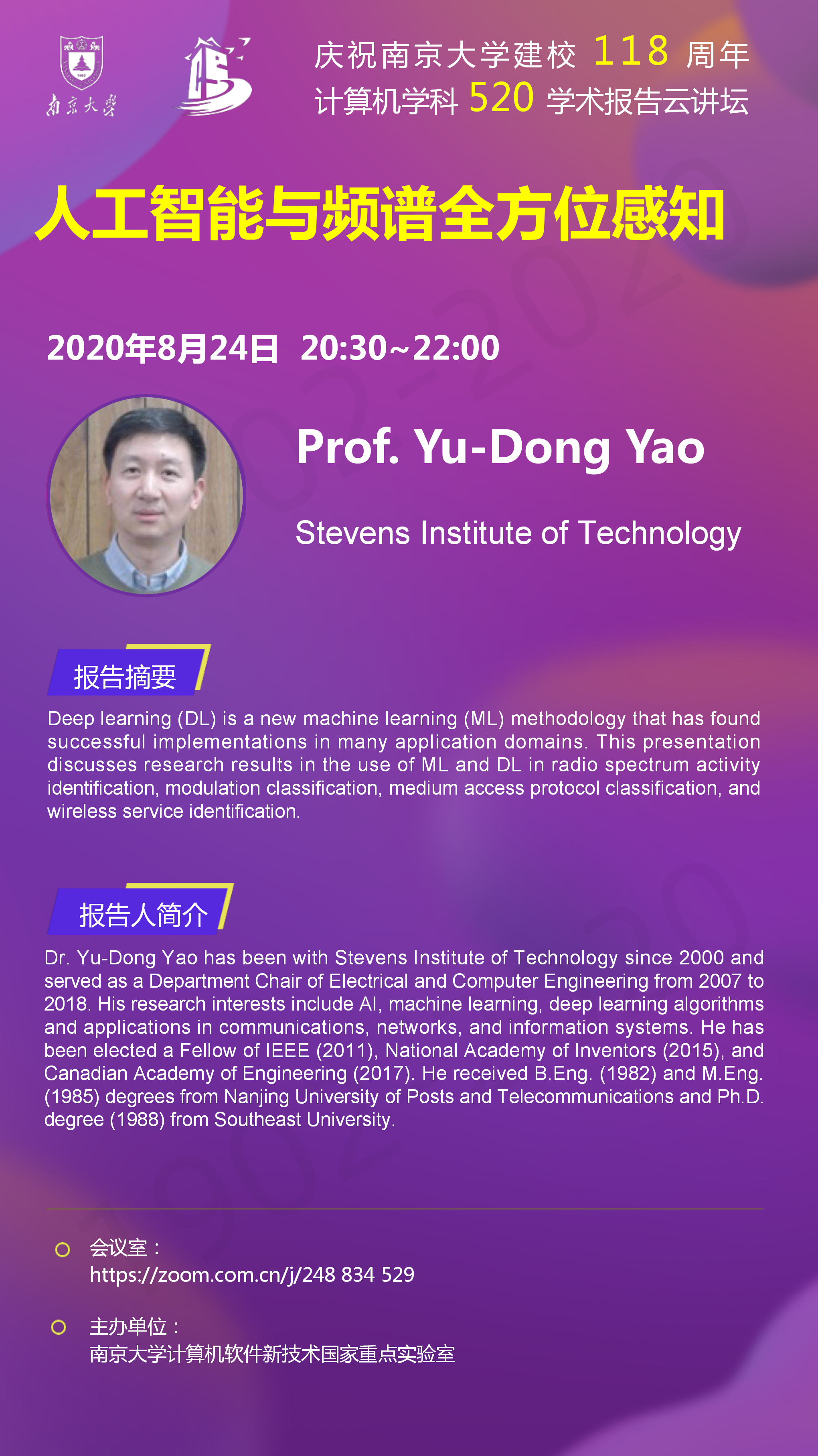 庆祝太阳成集团建校118周年 计算机学科520学术报告云讲坛- Yu-Dong Yao 教授