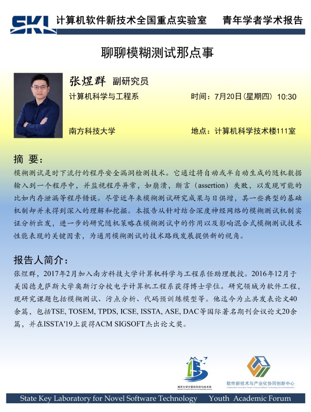 2023年7月20日 “软件新技术讲坛” 学术报告 - 张煜群 副研究员