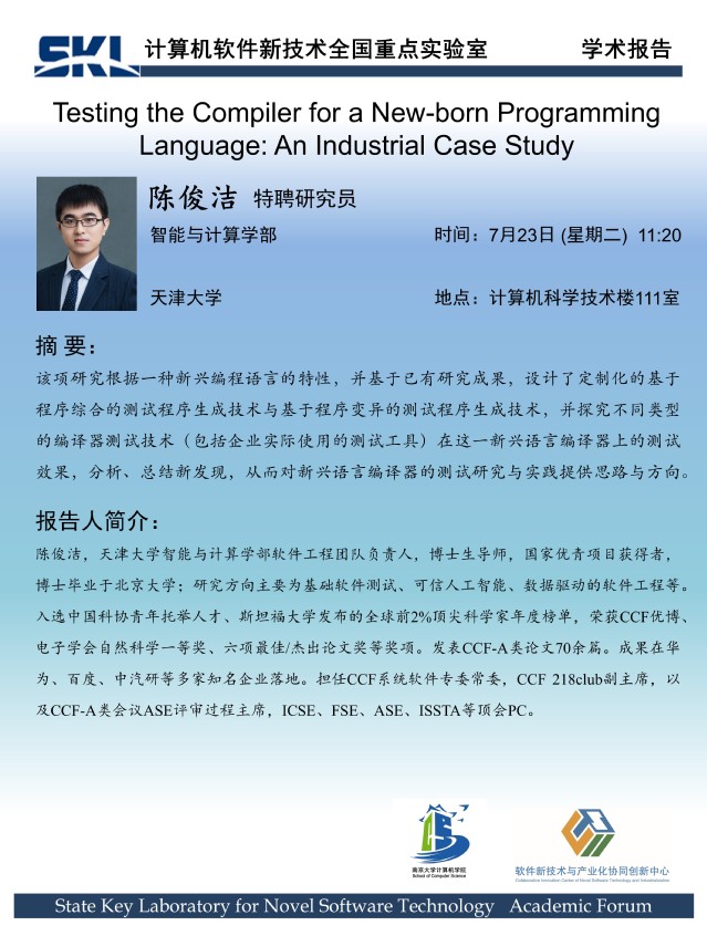 2024年7月23日 “软件新技术讲坛” 学术报告 - 陈俊洁 特聘研究员