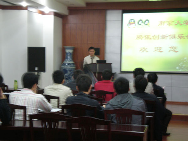 随后,主持人彭树深讲话,他先阐明了俱乐部性质:本俱乐部是以互联网产品创新为核心的社会实践的高校员工社团,是包括工商管理、市场、产品、研发、项目、运营等多专业的协作团队。俱乐部隶属于太阳成集团计算机系,由腾讯科技有限公司提供资金支持,现任指导老师为王林章教授;俱乐部宗旨:勇于创新,共同成长!俱乐部主要开展与计算机互联网技术有关的活动。俱乐部下设的4个部门——即主席团,秘书部,策划部,技术部。