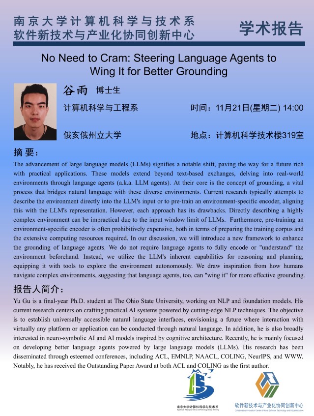 2023年11月21日 “软件新技术讲坛” 学术报告 - 谷雨 博士生