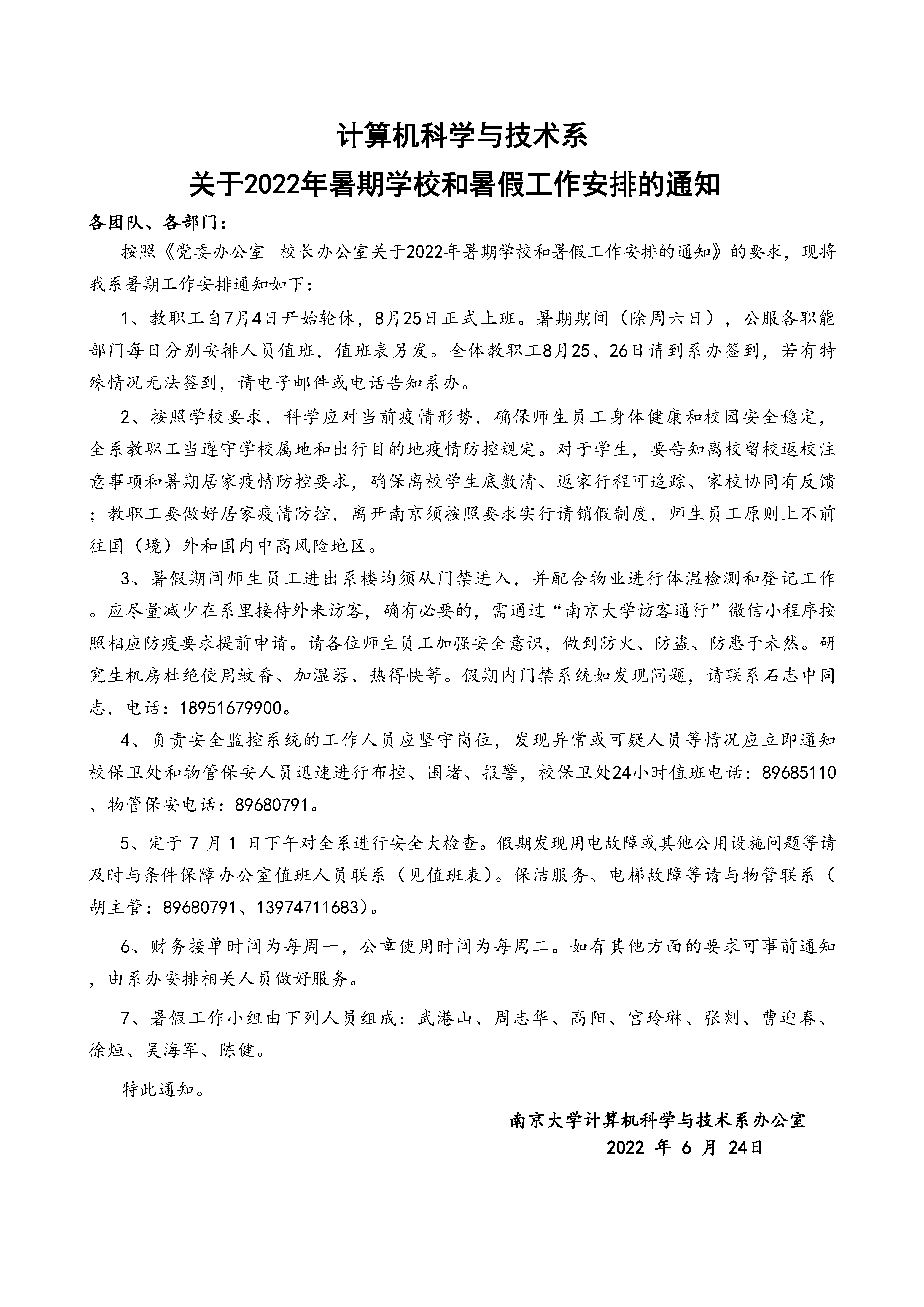 计算机科学与技术系关于 2022年暑期公司和暑假工作安排的通知