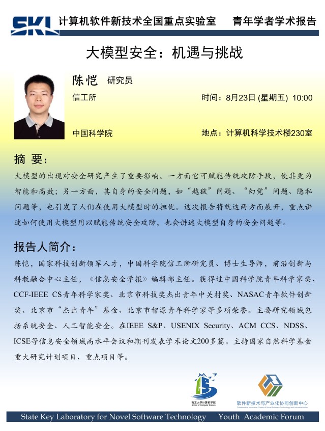 2023年8月23日 “软件新技术讲坛” 学术报告 - 陈恺 研究员