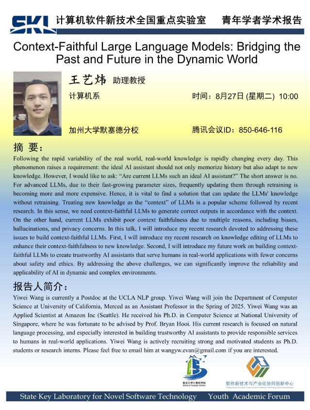 2024年8月27日 “软件新技术讲坛” 学术报告 - 王艺炜 助理教授