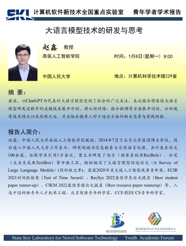 2024年1月8日 “软件新技术讲坛” 学术报告 - 赵鑫 教授