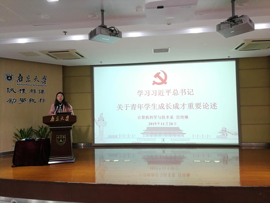 为深入推进“不忘初心、牢记使命”主题教育活动,强化党员同学的使命与担当意识,2019年11月20日下午,计算机系本科生党支部特邀系党委副书记宫玲琳老师,以“学习习近平总书记关于青年员工成长成才重要论述”为主题,为全体支部成员讲授专题党课。宫书记从八个方面出发,一一解读习近平总书记对当代青年人的寄语: