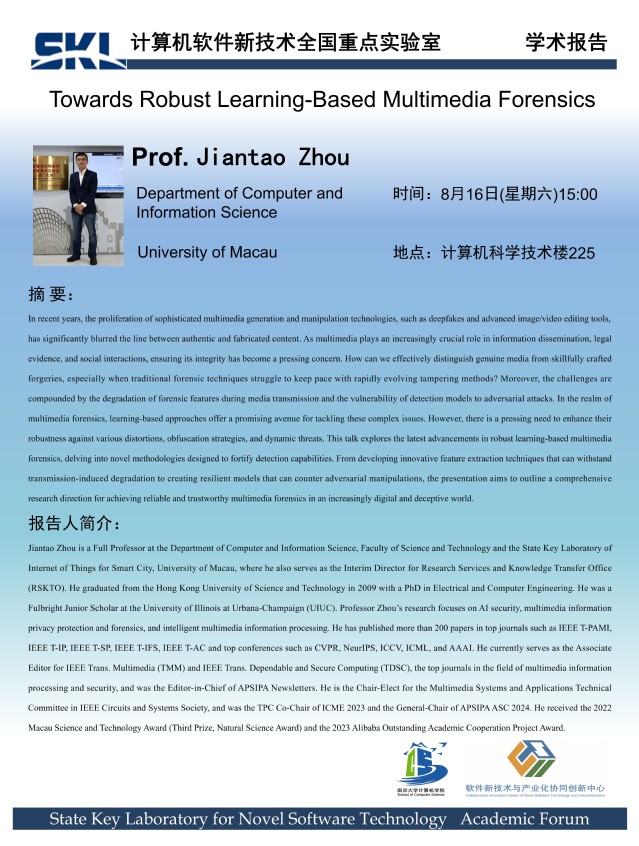 2025年8月16日 “软件新技术讲坛” 学术报告 - Prof. Jiantao Zhou