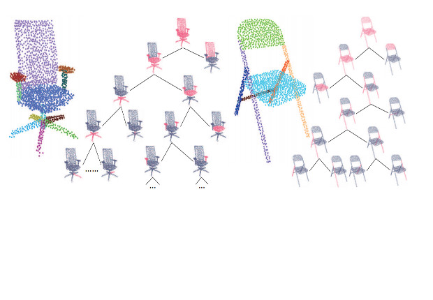 ◇ Fenggen Yu#, Kun Liu#, Yan Zhang, Chenyang Zhu, Kai Xu*, PartNet: A Recursive Part Decomposition Network for Fine-grained and Hierarchical Shape Segmentation, CVPR 2019.
